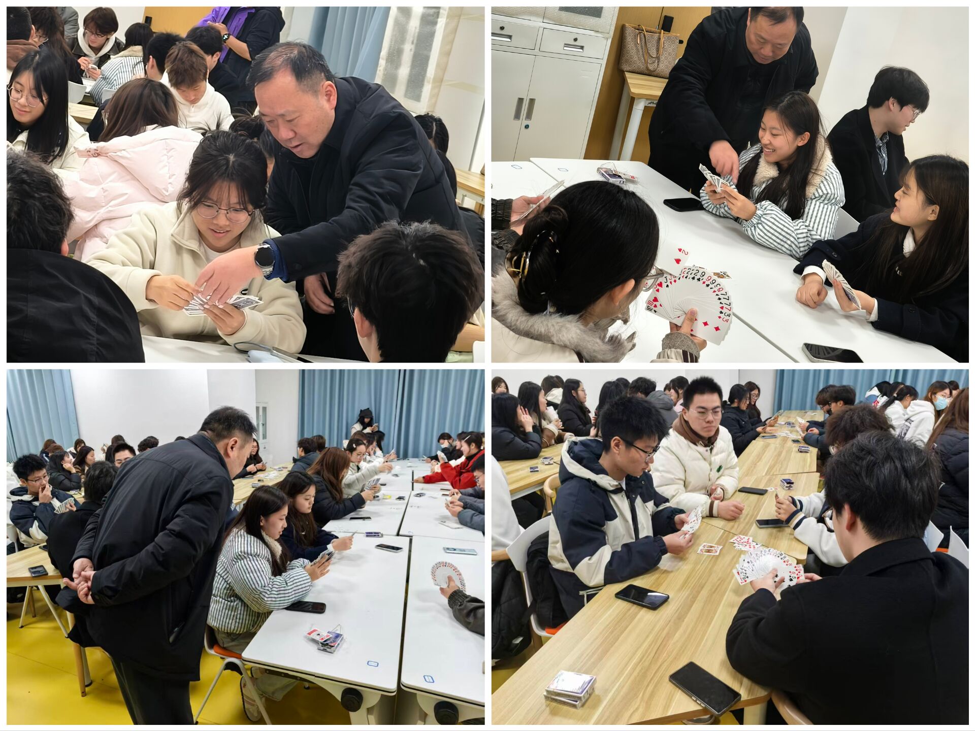 此次活动以掼蛋这一趣味形式为载体,既为师生提供了休闲交流、切磋技巧的平台,也在轻松氛围中锻炼了策略思维与团队协作能力,进一步丰富了校园课余生活。活动聚焦益智趣味核心,不仅拉近了师生距离,更传递了积极健康的休闲理念,为校园增添了温馨和谐的互动氛围。