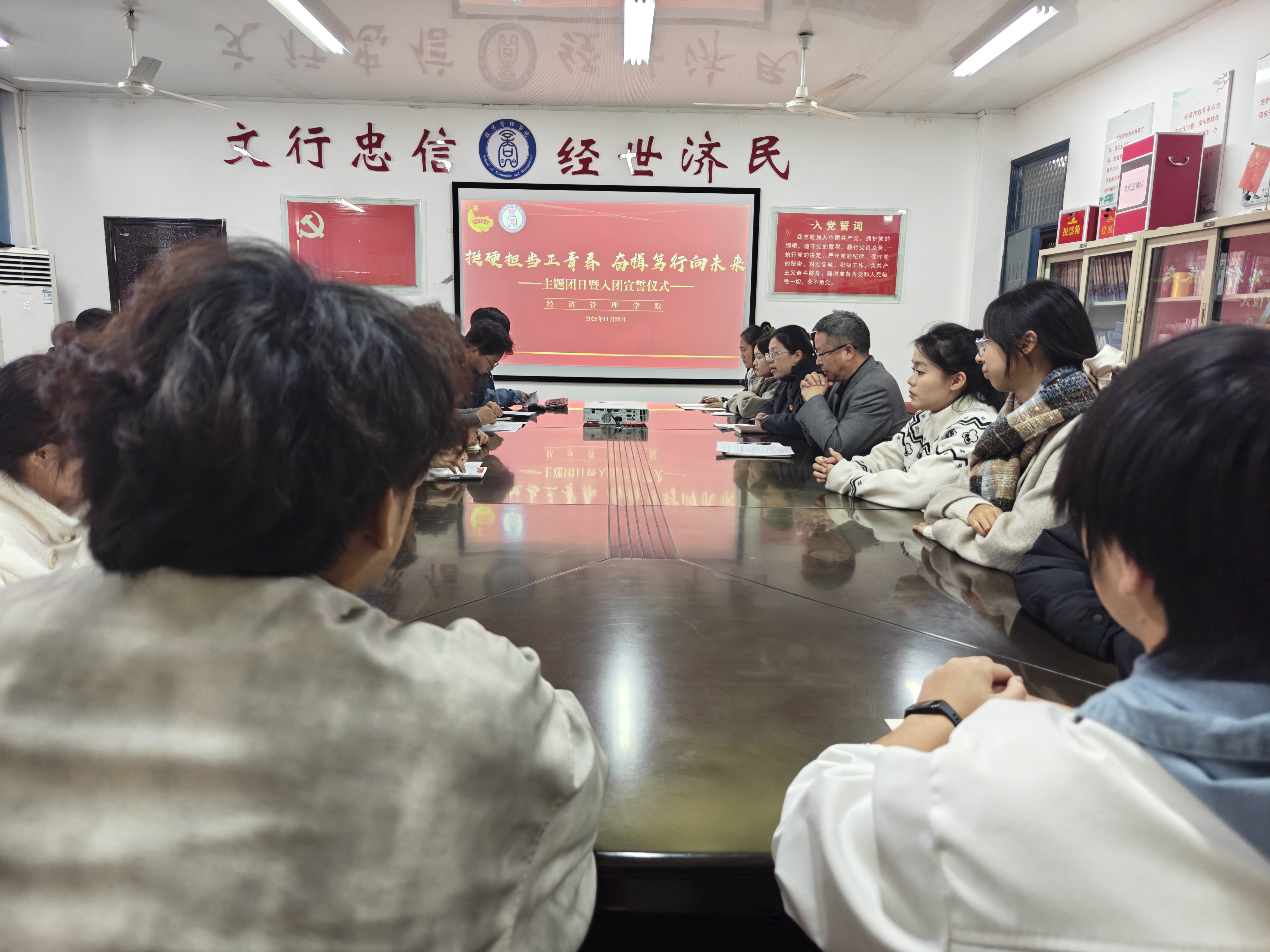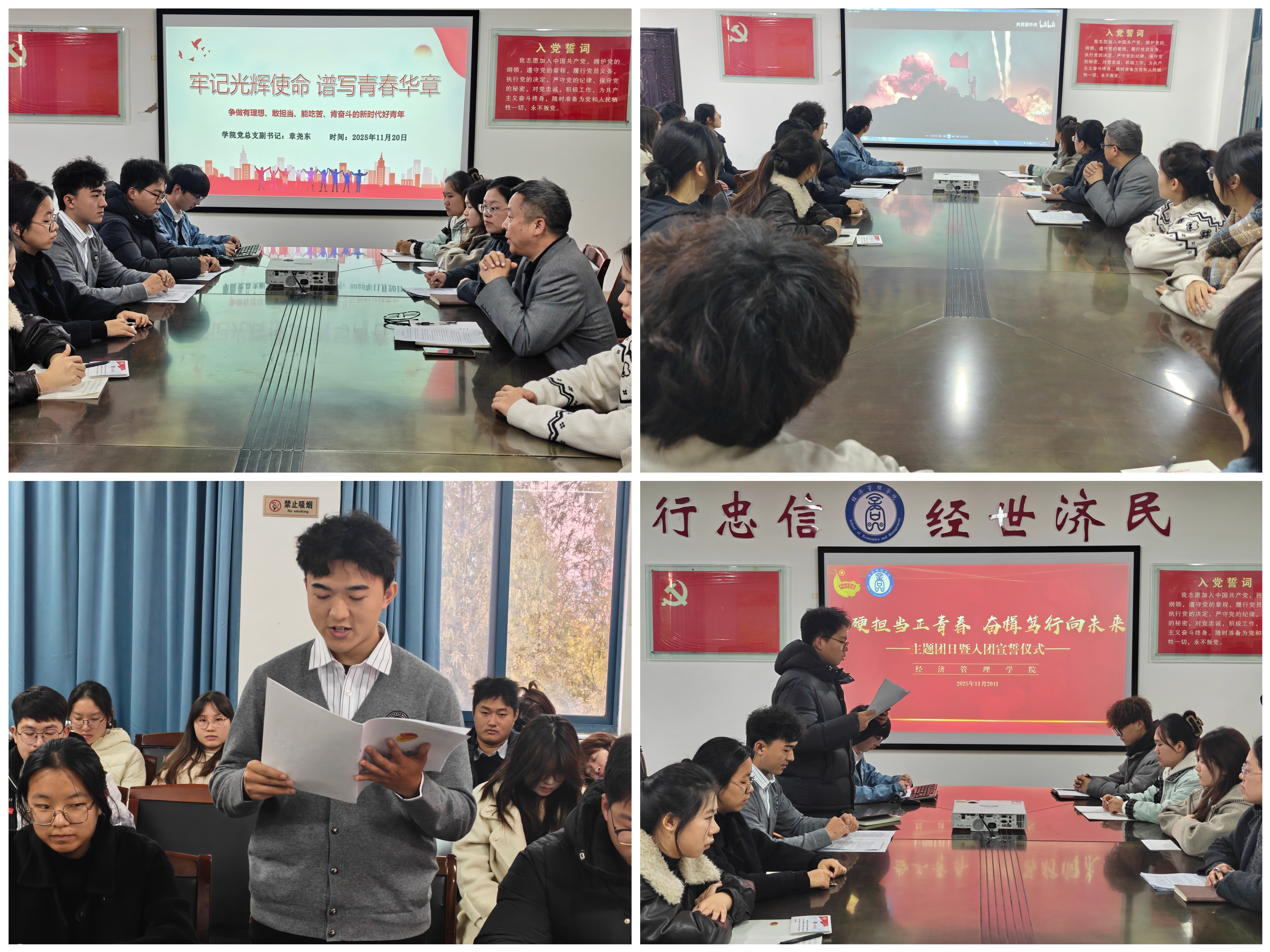 为进一步规范团员发展程序,强化新发展团员的身份认同,激发团员青年的集体荣誉感、责任感与使命感,11月20日下午,经济管理学院分团委组织开展“挺膺担当正青春 奋楫笃行向未来”主题团日活动暨新团员入团宣誓仪式。学院党总支副书记章尧东、分团委书记吴晨兰、学生分团委副书记张鑫、全体新发展团员及学生党员、团员代表参加活动。