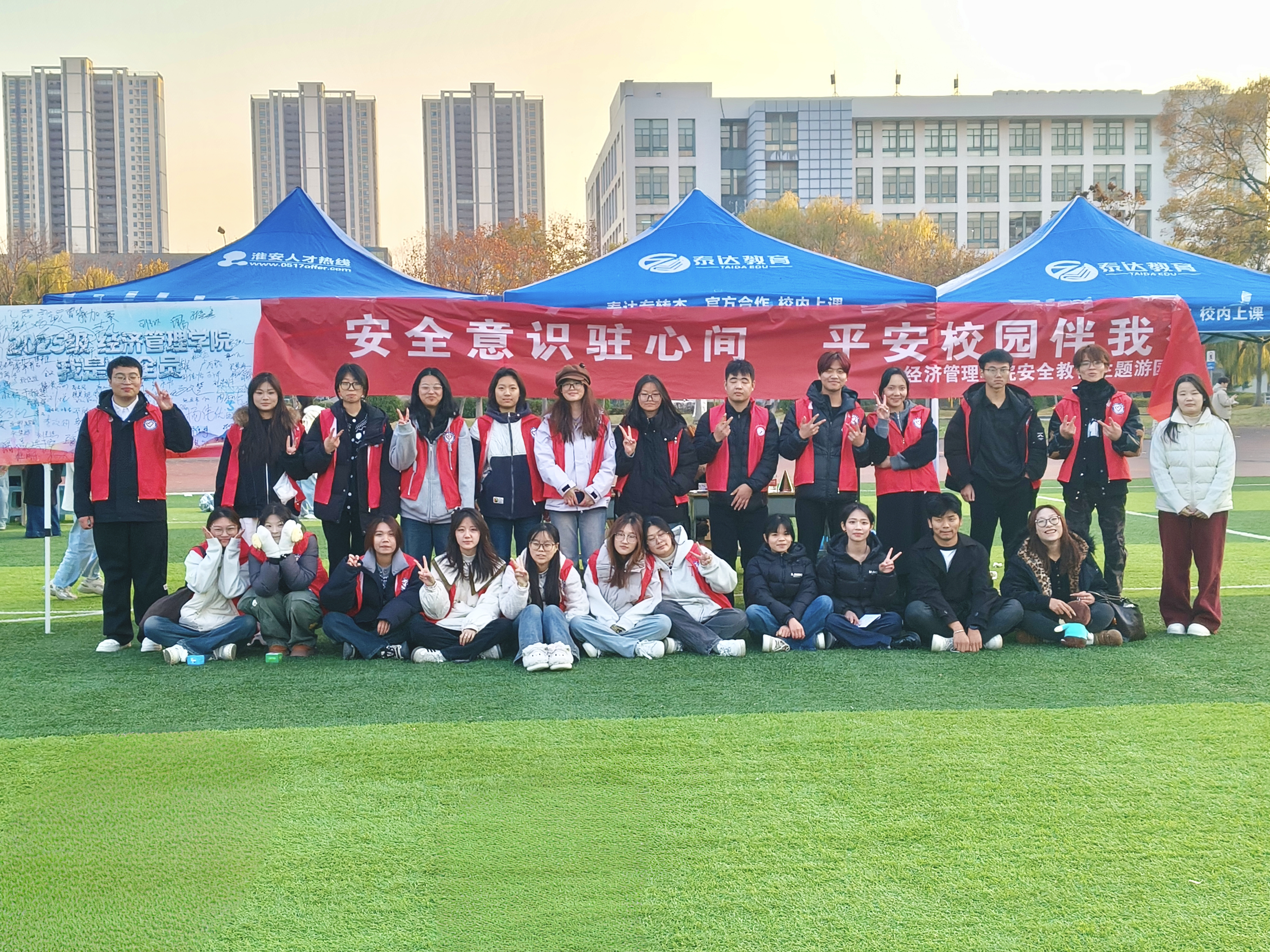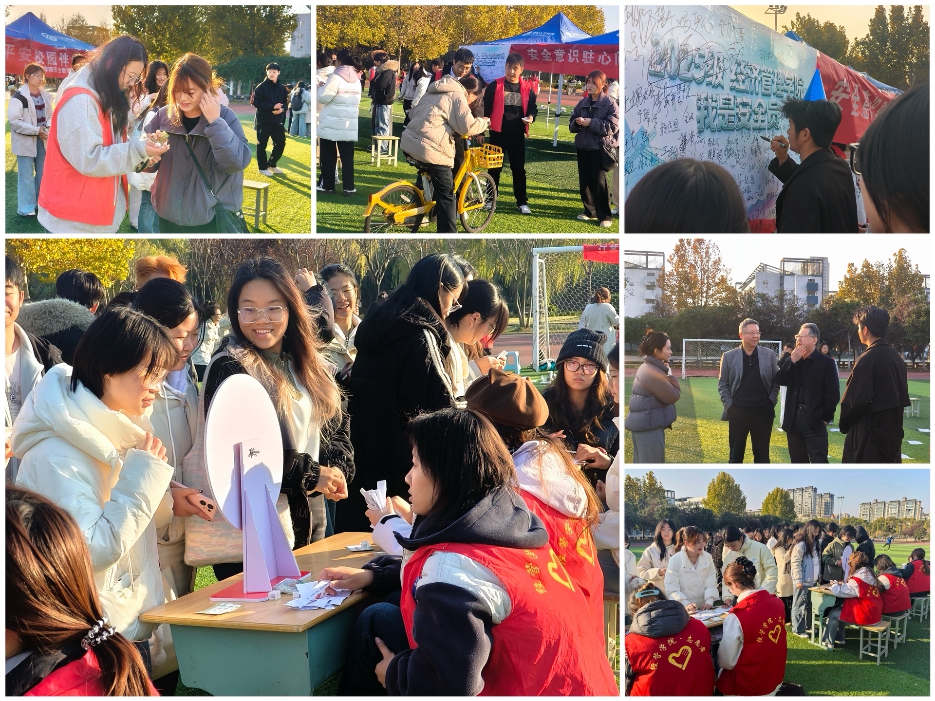 为深入推进校园安全文化建设,提升学生安全防范意识与自我保护能力,11月19日下午,经济管理学院在西操场成功举办“安全意识驻心间,平安校园伴我行”主题教育游园会。学院党委书记卢海涛、副书记章尧东亲临活动现场,实地了解活动开展情况,亲切慰问工作人员与参与学生,并就进一步做好学生安全教育工作提出明确要求。卢海涛指出:“安全是学生成长成才的基本前提,必须将安全教育贯穿育人全过程,推动安全意识内化于心、外化于行,营造‘人人讲安全、事事为安全、时时想安全’的校园氛围。”