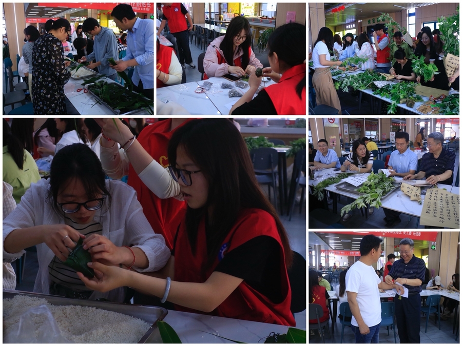 为弘扬中华优秀传统文化,增强学生对传统节日的认知与热爱,增进各民族同学间的交流,铸牢中华民族共同体意识,促进民族团结。5月28日下午,经济管理学院党总支、分团委、关工委组织学院满族、壮族、苗族、彝族等少数民族师生代表80余人,在学校和园餐厅开展 “粽叶飘香迎端午,巧手制作韵悠长” 主题活动。经济管理学院党总支副书记章尧东、副院长张海军、民建会员陈通、民进会员叶强及部分教师共同参与。